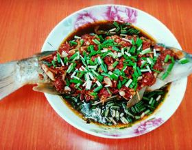 - 6. 出锅撒入香葱。一道香辣的剁椒鱼就做好了~