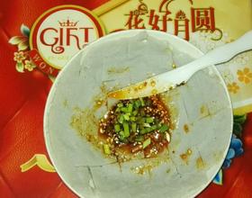 - 7. 然后把盐,芝麻,香油,黄瓜丝,辣椒油,葱花,醋混合在一起,淋在碗托上,就可以吃了。