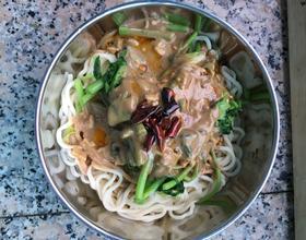 我做的是全素的,比较简单方便。大家可以自由发挥放所有你喜欢吃的,比如金针菇豆皮腐竹丸子香肠魔芋牛肉卷羊肉卷等等等等,再浇点热汤就变成了火锅面~最好是把所有的肉类蔬菜单独煮熟捞出,不要一锅煮出来,这样会减少嘌呤的摄入,比较健康。
