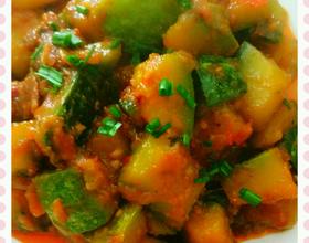 小南瓜入锅翻炒大火三分钟左右,加入盐,生抽少许。