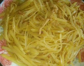 切细丝的技巧在于切片切的越薄,码放整齐,切的丝越细;土豆丝加盐腌制感觉吃起来更脆…