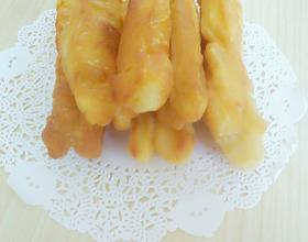 揉成面团的过程手会很粘,所以在倒油下去揉面团时记得留下一点点,留着揉好的时候用来隔面团的粘黏,炸的时候记住随时关注火候,常常翻一翻油条