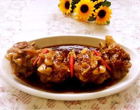 压力锅烀好的骨头捞出放入炒锅内,加骨头汤1碗和适量盐、海鲜酱油大火烧开转小火炖十分钟,最后放入适量的鸡精和水淀粉勾芡一下。