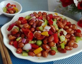 花生米可以自己炸,里面的蔬菜粒可以换成胡萝卜粒和黄瓜粒,调味料可根据自己口味添加。
