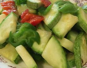 热锅热油放入葱姜蒜和花椒炒香,煎出花椒粒倒入西葫芦