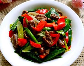 加入蒜苗,红椒继续炒二分钟,最后放入盐,糖,鸡精调好味道就可以起锅了。