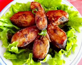 煎鲅鱼块外表微有酥黄感,加入适量清水煮至收汁即可