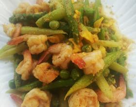 蛋黄焗芦笋虾球的做法