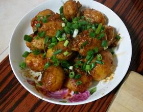 锅里放油放蒜酱汁土豆加适量清水待酱汁收干