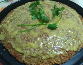 米饭,鸡蛋,盐,糯米粉,胡椒粉,五香粉,味极鲜倒入碗中拌匀,倒在保鲜膜上