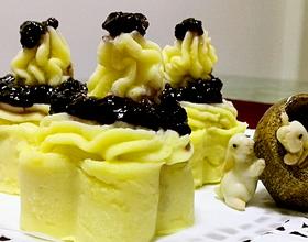 做出照型装饰一下,把蓝莓酱挤在土豆泥上
