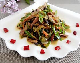 猪肉、胡萝卜、青椒分别切丝,姜蒜切片,葱切末