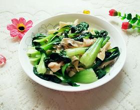 这道菜全程急火快炒,炒岀来的青菜才颜色翠绿,口感清脆