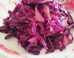紫甘蓝变软放入盐鸡精调味出锅。