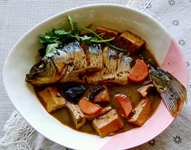 - 6. 然后倒入酱油,加温水适量,与鱼的身体平行就好。中火炖十分钟。