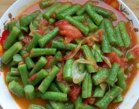 - 8. 把焯好的豆角倒进去翻炒 加盐 味精 鸡精调味 翻炒均匀后装盘即可