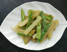 茄子炒熟约四分熟,倒入豆角和土豆,略炒两分钟