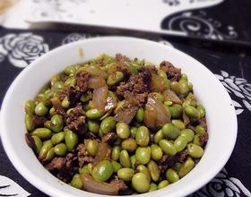 锅内放油,三成热时加入姜末煸炒出香味,下牛肉末翻炒。