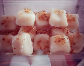糯米不要揉的太烂,那样整出来不香,吃上去没有嚼劲。蒸好后放在盘子里。可以用湿毛巾 盖好,不容易的风干。想什么时候吃,就拿出来装盘子。撒上糖桂花。即可。食用,太美味了,糯米粉小孩子不宜多吃啊。适可而止。夏天当然你也可以放冰箱冷藏一会再买不来吃,味道绝对赞。