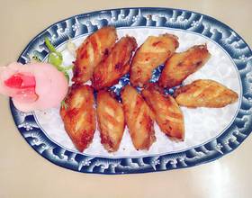 备鸡翅一斤洗净,在鸡翅两边各上划两刀,以便入味,姜切片