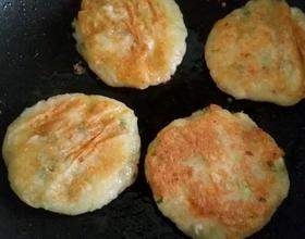 锅加热,滴几滴油,弄一小团土豆泥拍成小饼放入锅中中小火煎