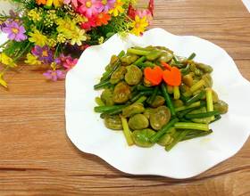 加入蒜苗翻炒,同样盖上锅盖焖一会儿