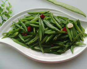 芸豆下锅爆炒1~2分钟放生抽,鸡精。