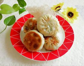 - 13. 包子再翻过来,倒入面粉水。盖上盖子把水蒸发干包子也熟了