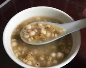 芡实洗净 焯一下水 煮掉日晒的味道 薏米绿豆也用这个方法处理好