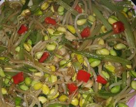 放入豆芽翻炒,放入盐,鸡精,十三香均匀炒五分钟