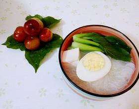 材料图:粉丝,豆腐,鸡蛋,青菜