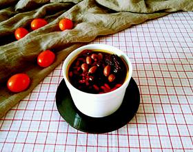 锅中加入1毫升的水,先把红豆和花生大枣(红枣一分为二掰开)放入锅中,大火烧开,小小火慢炖1小时
