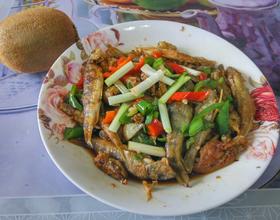 河鱼洗净沥干(辣椒切丝,葱切段,蒜切粒,姜切丝)