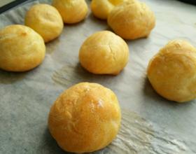 用两个勺子或者是裱花袋。让泡芙成型。烤箱210度烤十分钟,等到泡芙涨起来以后,再转到180度考20至30分钟