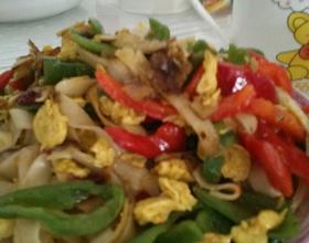 - 6. 把青椒和红椒,倒入锅中,翻炒。
