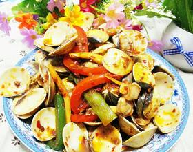 把海水或者盐水倒入盛有蛤蜊的容器里;再在盛有蛤蜊的容器中加入几滴花生油,然后用筷子搅开,使油花均匀铺在水面上,这样水与空气隔绝,蛤蜊很快就会把泥沙吐出来。喜欢吃辣的也可以放点小米辣炒!