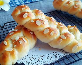 - 11. 发好,取出,刷层蛋液,撒杏仁片