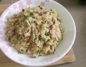 - 2. 把土豆碾碎,适量加点芝麻油,盐,鸡精搅匀。