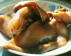 猪耳和猪蹄混卤时,猪耳卤的时间要短些,否则太软失去了脆弹的口感。