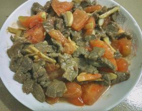 炒至牛肉变直,放入番茄炒至番茄出水即可