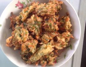 把白萝卜肖皮,然后把白萝卜,胡萝卜用菜插,插丝,然后用菜刀剁碎,不要太碎了,然后放大碗或盆里,在把香菜也切末,放一起,放两鸡蛋,在放面粉,放盐,味精,搅匀