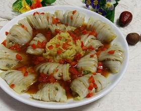 肉馅味道根据自己的口味定,切菜帮一定要切透,但别切到两端,手压菜帮出佛手形状。最后勾芡是我自己想的,为了拍照好看,可省略不用。