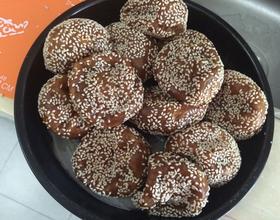取一个小剂子按扁,中间放上红豆馅包好,揉圆滚上芝麻即可,依次将全部做完。
