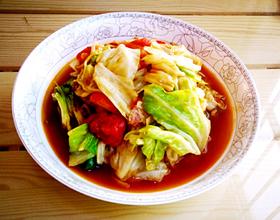 大头菜变软后,放入西红柿块,西红柿变软后放生抽,蚝油白糖。