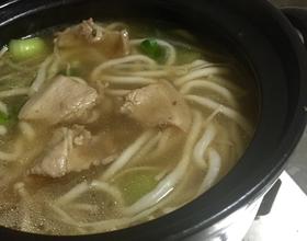 把熟了的五花肉放进去,放盐,由于浓汤宝带一定的咸淡,咸淡自己喜欢,喜欢辣的记得放辣椒呢!