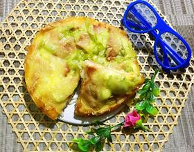 铺上火腿肠,青椒,预热烤箱