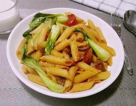 此款做法也可换成其它面来做,通心粉比较劲道,吃起来口感好,通心粉煮完要过一下凉水,配菜随自己喜好随意搭配!