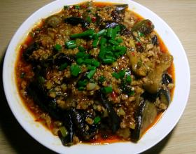 加入豆瓣酱,待其烧出红油,加人茄子。