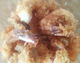 然后把粘过鸡蛋清的虾放入面包糠里面,粘均匀