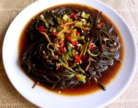 煮完的蕨根粉要放在凉水内避免粘连,喜欢花生碎可以加,可以加香菜,把汁调好倒入会更好避免口感不合适